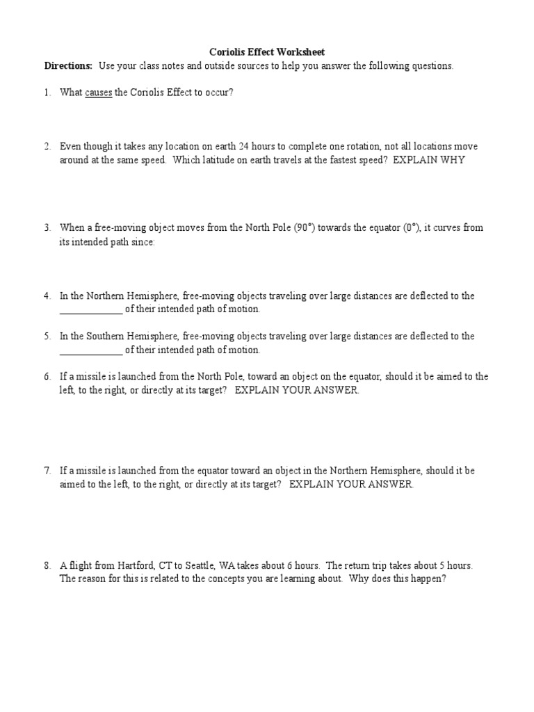 Quiz Worksheet Coriolis Effect Facts For Kids Study Com
