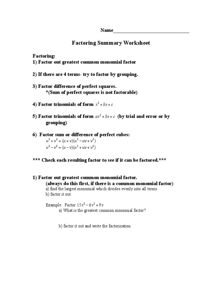 35 Factoring Polynomials Gcf Worksheet Worksheet Project List