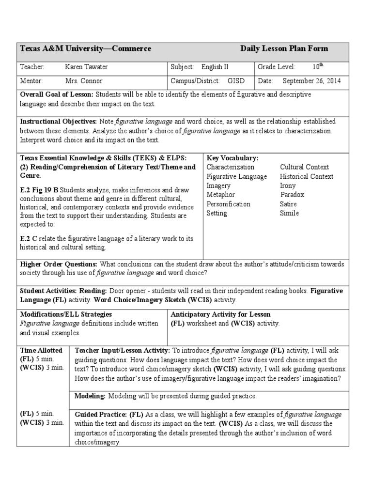 Figurative Language Daily Lesson Plan Education Theory Linguistics