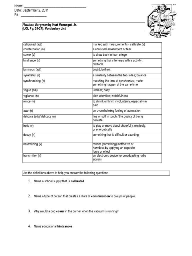 Quiz Worksheet Harrison Bergeron Vocabulary Study Com
