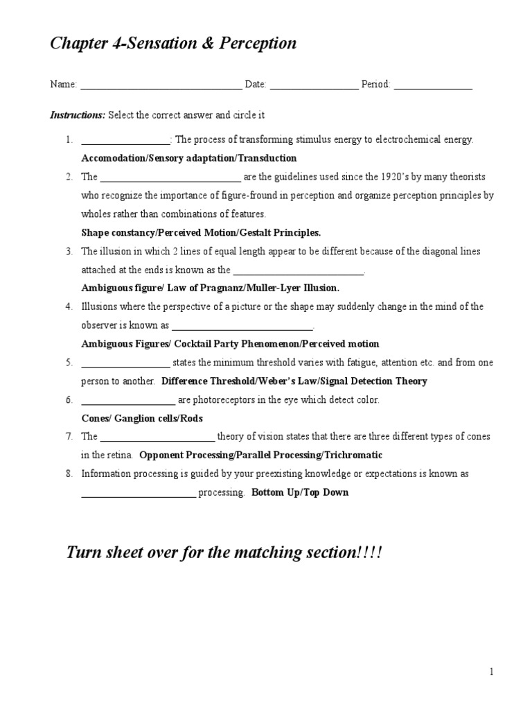 English Worksheets Sensation Perception Lab